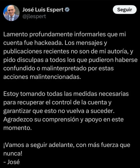 El posteo desde la cuenta de X de José Luis Espert causó sorpresas y burlas, ya que estaba promocionando una nueva versión de "Libra", la criptomoneda que estafo a cientos de personas y causó denuncias a Milei y su entorno.