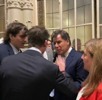 “Fue en esos instantes cuando comencé a escuchar gritos que provenían de un palco superior ubicado detrás de mi persona. Cuando me di vuelta y alcé la vista observé a varias personas en uno de dichos palcos, entre las cuales identifiqué al Señor Santiago Caputo.” Todos desaforados, me gritaban e, incluso, este último hizo un gesto que en el contexto me intimidó, al acercar y retirar sus dedos índice y mayor a los ojos. También a ellos (y al Señor Caputo que estaba en el medio) les exhibí el texto de la Constitución argentina, relató Manes.