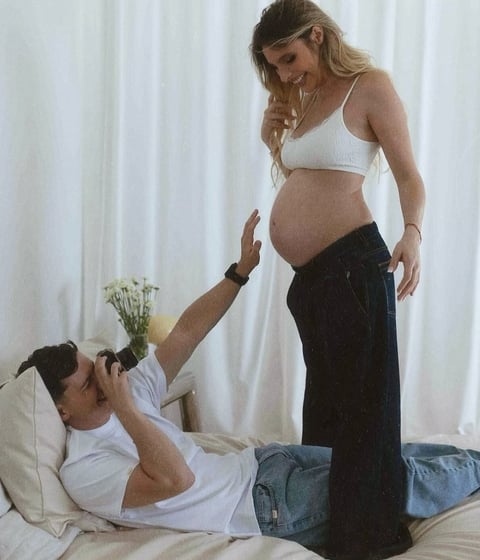 "BEBÉ EN CAMINO!! Contando los días para conocerte, te amamos. -Mamá y Papá", escribió la pareja en un posteo de Instagram con una serie de imágenes mostrando como avanza su embarazo.